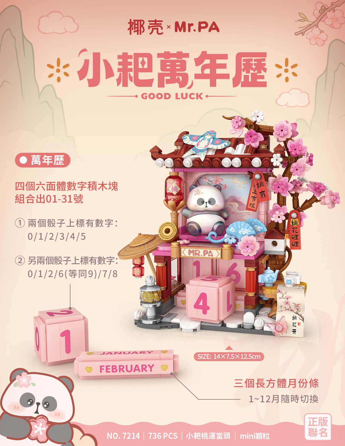 椰殼 × Mr. PA 小耙萬年歷 - 桃運當頭 (7214)